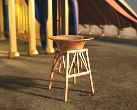Before entering the Holy Place, priests washed at the laver — bronze basin filled with water, reflecting their face, and washing their hands.